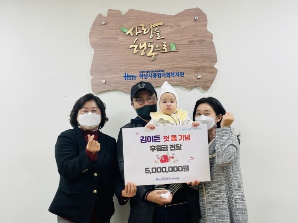부부는 “이든의 첫돌을 맞아 아이의 이름으로 우리가 사는 하남시와 이웃들에게 의미 있는 일을 하고 싶었다”며 “이든이 어려운 이웃을 돌볼 줄 아는 건강한 아이로 성장하기를 바란다”고 전했다.