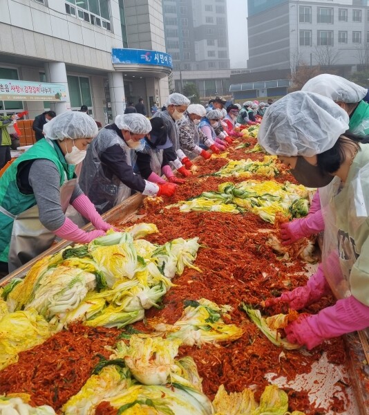 회원들은 이른 아침부터 감자, 고구마를 판매하고 얻은 수익금과 수도권매립지 후원금을 통해 김장재료를 구입, 새마을지도자협의회 및 이장단협의회, 기관단체봉사자 등 100여명과 재료를 손질하고 양념을 버무려 김장김치를 담갔다.