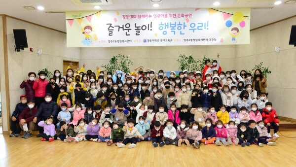 이번 문화공연 행사는 지난 5월, 대학 자원을 활용한 사회공헌 및 어린이들의 복지증진을 위해 양주2동 행정복지센터와 경동대학교 유아교육과가 체결한 업무협약에 따라 10월 26일 11월 9일 11월 16일 총 세 차례에 걸쳐 진행됐다.