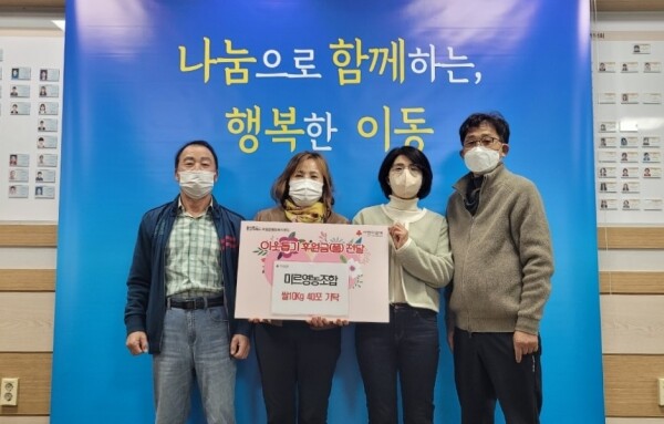 민숙희 대표는 “지역 내 어려운 이웃들에게 따뜻한 밥 한 그릇 대접하고 싶은 마음으로 쌀을 기부하게 됐다”며 “어려운 때에 이웃들이 밥을 지어 드시고 힘을 내시길 바란다“고 말했다.