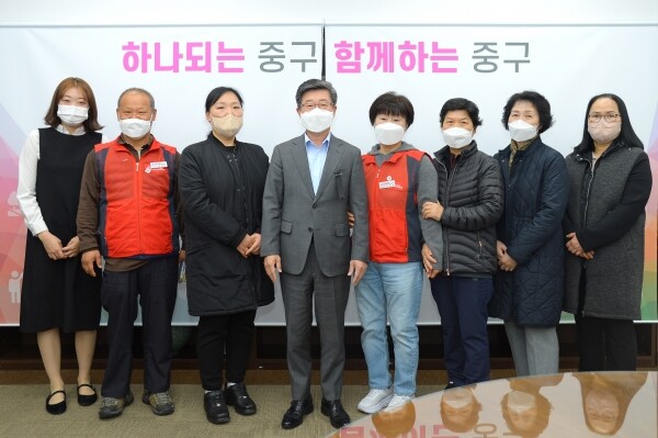 지난 11월 4일 오전 중구청 3층 구청장실에서는 중구노인요양센터 요양보호사 6명과 간담회가 진행됐다.