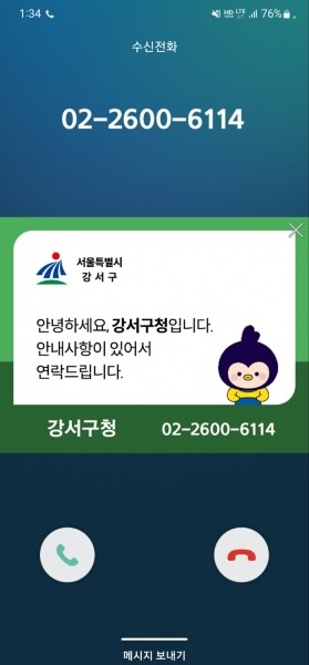 통화 종료 시에는 민원인 스마트폰 화면에 강서구 행사 및 주요 구정 소식 등을 시각화한 이미지를 보여준다.