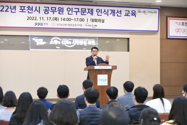 150여명의 포천시 공무원이 교육에 참여해 저출산·고령화 문제 개념과 중요성 결혼·출산·양육에 대한 긍정적인 인식개선 포천시 인구문제와 발전 발향 등을 대해 논의했다.