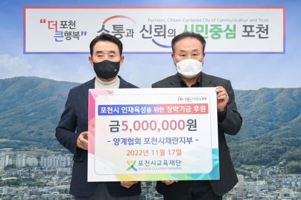 기탁식에 참석한 양계협회 포천채란지부 박승권 지부장과 포천양문패션칼라협동조합 이향래 이사장은 “미래 포천을 이끌어갈 꿈나무 육성에 보탬이 되고자 회원농가 및 조합구성원들의 정성을 모아 기탁했다”며 “포천의 밝은 미래를 위해 노력하는 학생들에게 알차게 써달라”고 전했다백영현 이사장은 “어려운 여건 속에서 기탁하신 기금을 바탕으로 지역 학생들이 미래 인재로 잘 성장하도록 소중하고 뜻깊게 사용하겠다”고 말했다.