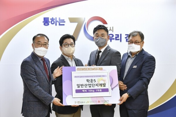 이번 기탁식에서 ㈜학운5일반산업단지개발은 김포복지재단에 10kg 쌀 2,500포를 기탁했다.