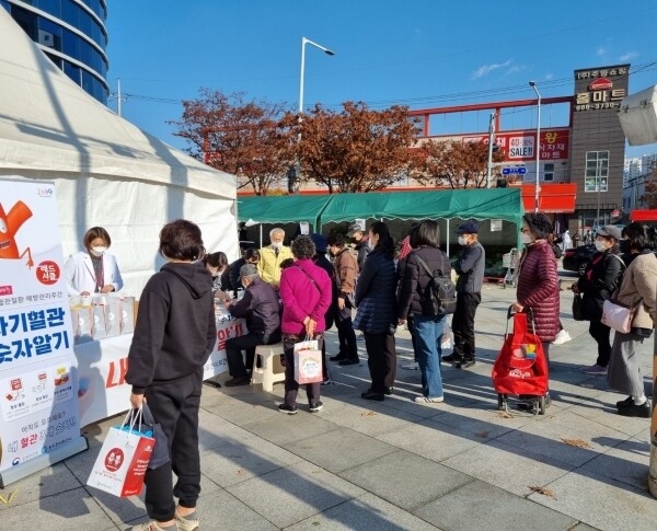 심뇌혈관질환 예방 및 당뇨병 관리 홍보를 목표로 실시한 이번 캠페인은 동두천농협 앞에서 홍보부스를 운영해 혈당 및 혈압 무료측정, 체내 염분 테스트 등 건강·영양상담을 진행했다.