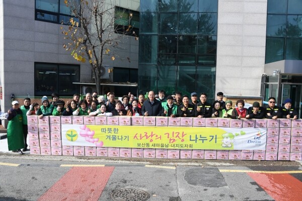 이날 사랑의 김장 나눔 행사는 관내 소외계층 가구에 김장 김치를 지원하고자 새마을부녀회에서 주관했으며 보산동 각 사회단체원, 미8군지원단, 자원봉사자 등 80여명이 참여했다.