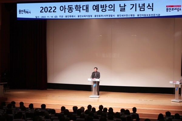 기념식엔 이 시장을 비롯해 유제열 용인동부경찰서장, 조은순 용인서부경찰서장, 강원하 용인교육지원청장, 김은경 용인세브란스병원장, 신재학 경기용인아동보호전문기관장 등 200명이 참석했다.