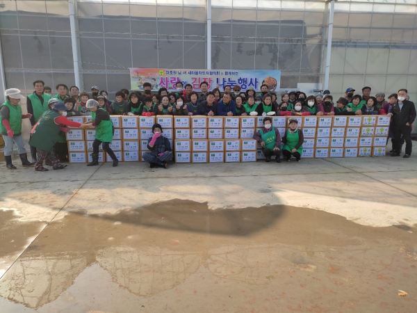 새마을 협의회에서 배추 900포기를 구매해 직접 회원들이 배추 절이기, 무, 파, 갓 등 재료를 씻고 다듬는 등 양념을 준비해 17일 배추에 양념을 골고루 넣어 정성스럽게 버무려 김장김치를 담았다.