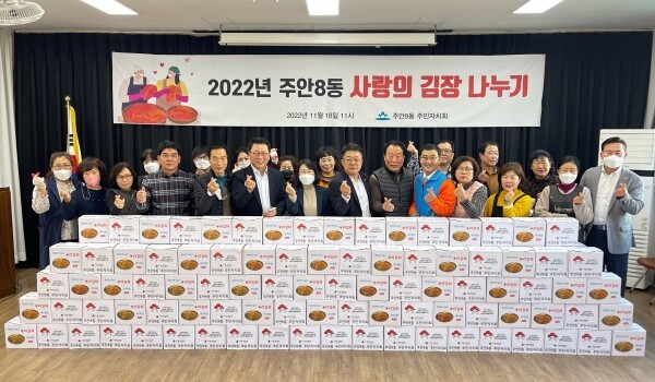 한편 주안8동 주민자치회는 김장 나누기 행사 외에도 승학산 둘레길 장미터널 조성 사업, 마을 어르신 중식 제공 사업, 푸른 나무 등굣길 사업, 주민총회 개최 등 침체한 마을공동체의 회복을 위한 활동을 다방면으로 전개하고 있다.