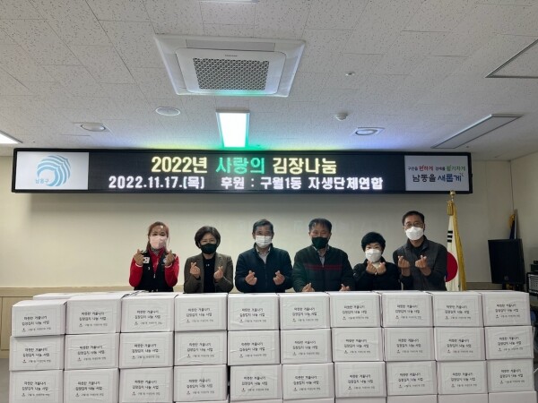 이번 행사는 구월1동 자생단체연합이 김장김치 80박스를 구매해 기부했으며 김장김치는 저소득 및 소외계층, 미인가 경로당 등에 전달될 예정이다.