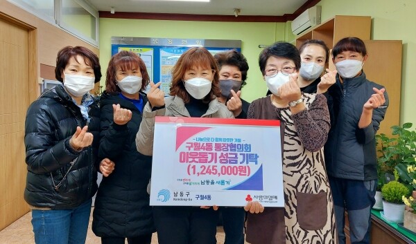 후원금은 통장협의회 공동체 활동 중 뜨개질 봉사 모임인 ‘희망나눔 울타리’팀과 저소득 어르신 급식 지원 모임인 ‘요리사랑’팀원들의 재능기부를 통해 완성한 수세미와 전통 된장, 간장을 판매해 모은 수익금으로 저소득층 따뜻한 겨울나기 지원을 위한 난방비 및 주거환경 개선 사업비 등으로 사용될 예정이다.