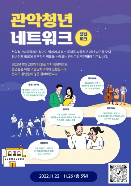 아울러 신림역 인근에 있는 관천로 문화플랫폼 S1472에서는 오후 2시부터 8시까지 청년들을 위한 네트워크 상담소를 운영한다.