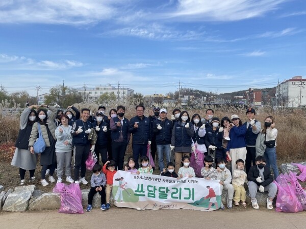 오산천 주변에 버려져 있던 쓰레기를 수거하는 이번 활동은 오산시시설관리공단 직원과 가족 40여명이 자발적으로 참여했다.