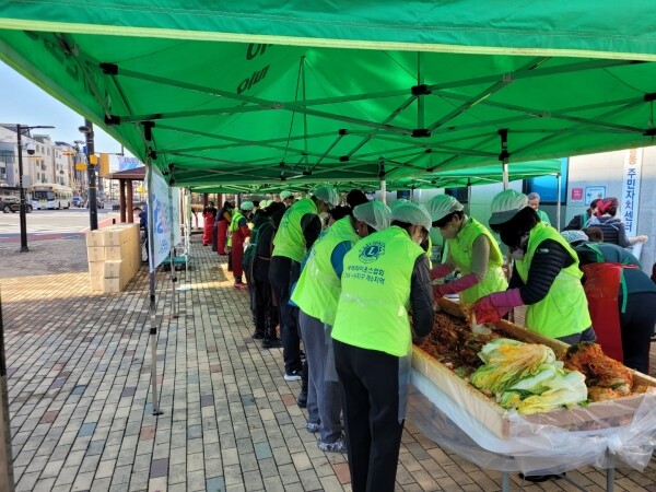 이번 행사는 추운 날씨에도 불구하고 새마을부녀회, 신도라이온스클럽 회원 및 유관단체 회원 등 40여명이 김장 봉사에 참여했다.