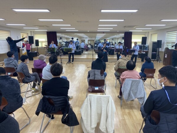 서운면 주민자치위원회에서 운영하는 프로그램을 통해 주민에게 찾아가는 공연 봉사를 하는 특색사업으로서 지난 18일 서운면 주민자치센터에서 주민자치프로그램 ‘산울림 밴드’가 1시간 동안 서운 장애인주간보호센터 이용자 25명을 위해 공연을 진행했다.