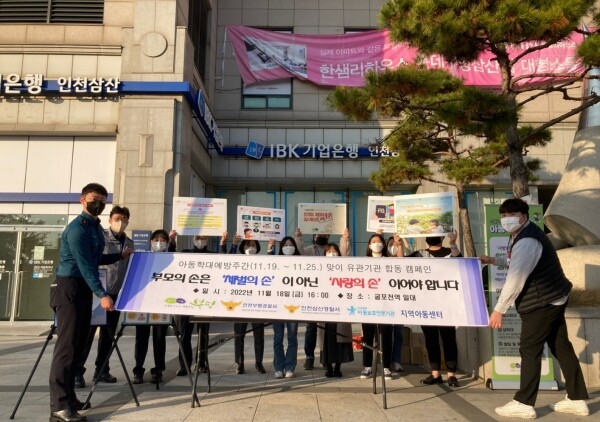 이번 캠페인은 제16회 아동학대 예방의 날 및 예방주간을 맞아 부평구청, 삼산경찰서 부평경찰서 인천북부아동보호전문기관, 지역 내 지역아동센터 등이 참여했다.