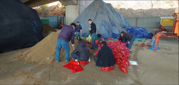 이날 자율방재단, 이장협의회, 행정복지센터 직원 등이 참석해 쌀쌀한 날씨에도 아침부터 와부 설해전진기지로 모여 모래와 소금을 섞고 비닐봉지에 담는 작업으로 비지땀을 흘렸다.
