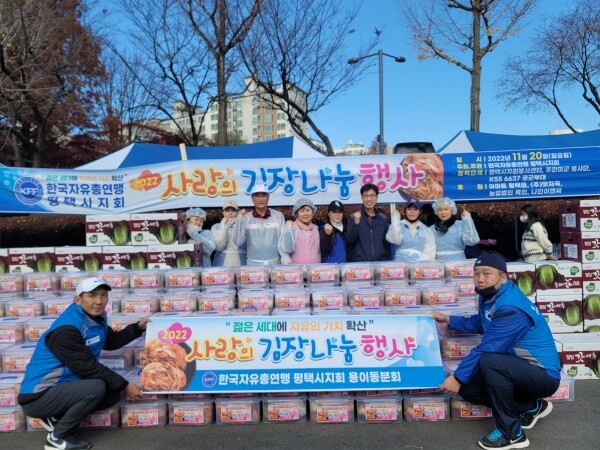 이번 행사는 한국자유총연맹 평택시지부 각 지역별 분회를 통해 우리 사회 곳곳에 있는 소외이웃들에게 김장김치를 직접 담가서 전달하는 행사로 사랑과 정성으로 만든 김장김치는 관내 기초생활수급자 및 저소득 홀몸어르신들에게 전달되어 따뜻한 겨울나기에 도움을 줬다.