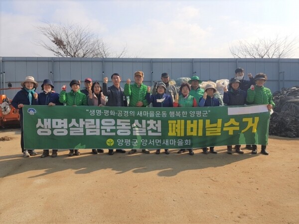 수거 활동은 박웅 협의회장을 비롯해 김양금 면부녀회장 등 20여명의 새마을협의회 회원들이 참여해 양서면 28개리 마을에서 나온 영농폐기물을 수거해 공동 집하장까지 폐기물을 운반했다.