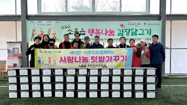 행사는 지난 8월 사랑나눔텃밭에 재배한 배추와 무로 소흘읍 30여명의 유관단체 회원들이 참여해 김장김치 500포기를 담갔으며 관내 취약계층과 새터민·다문화 가정에 전달했다.