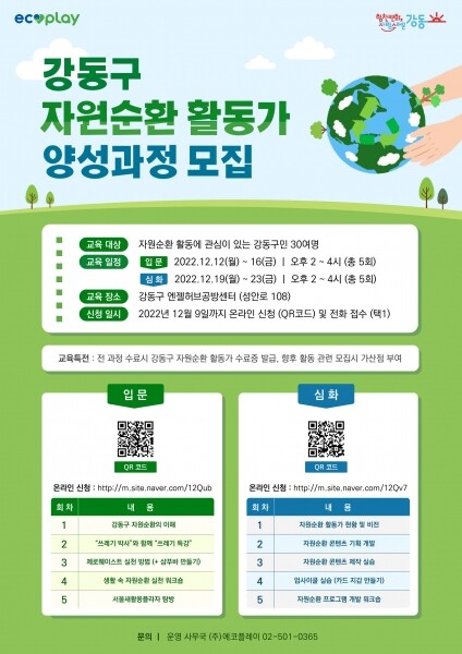 오는 12월 9일까지 QR코드 또는 에코플레이 운영 사무국으로 전화 접수하면 된다.