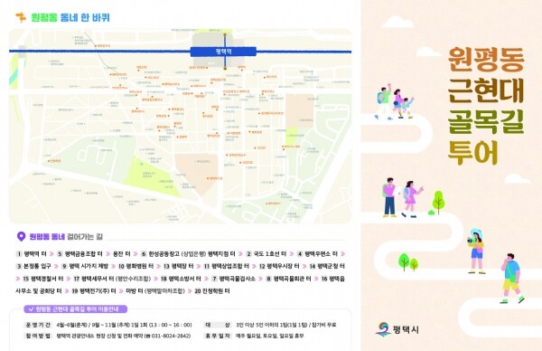 문종호 평택시 관광과장은 “근·현대 음악과 결합한 평택시만의 특색 있는 스토리텔링으로 관광객에게 평택의 근현대사에 대한 흥미로운 해설을 제공해 새로 시작되는 원평동 도보 투어가 평택만의 차별화된 관광콘텐츠로 자리매김할 수 있도록 최선을 다하겠다”고 밝혔다.