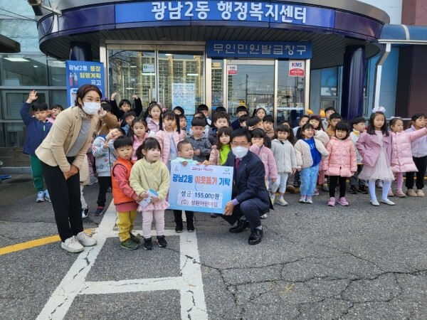 이에 대해 이상오 동장은 “지역 내 나눔 문화 확산을 위해 후원금을 전달해 주신 원장님과 원아들에게 감사드리며 도움이 필요한 곳에 소중히 잘 전달하겠다”고 말했다.
