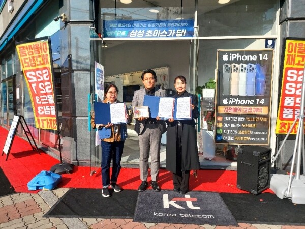 회천2동 지역사회보장협의체와의 협약을 통해 KT대리점은 매월 어려운 이웃을 위해 휴대폰케이스와 액정필름, 매장 내 설치된 커피 판매 수익금을 기부하기로 약속했다.