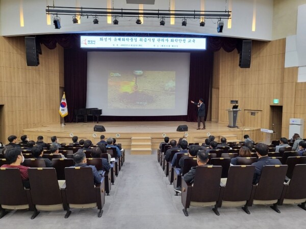 이번 교육은 관내 유해화학물질 취급 사업장 현장관리자 155명이 참석했으며 화학물질 안전분야 전문가인 홍성철 호서대 안전공학과 교수가 강의를 맡았다.