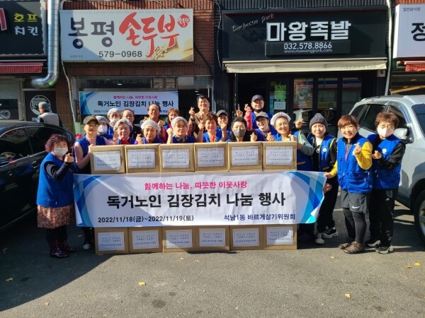 석남1동 바르게살기위원회는 지난해에도 김장김치 나눔 행사를 열었으며 매년 ‘수제 비누 나눔’ ‘사랑의 김 전달’ ‘클린업데이’ 등 다양한 봉사활동을 통해 이웃사랑을 실천하고 있다.