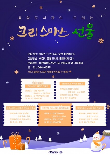 효양도서관 관계자는 “이번 프로그램을 통해 가족, 친구, 이웃과 함께 즐거움을 나누며 친밀감을 형성하고 연말 이웃들을 관심 있게 돌아볼 수 있는 의미 있는 시간이 되길 바란다”고 말했다.