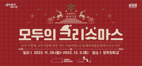 서울시평생교육진흥원이 운영하는 모두의학교에서 11월 28일부터 12월 3일까지 성과공유주간 ‘2022 모두의 크리스마스’를 개최해, 전시부터 공연, ‘나눔마켓’까지 다채로운 행사를 운영한다.