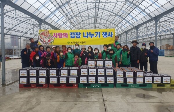 새마을부녀회와 새마을지도자협의회 회원 등 30여명은 지난 20일부터 22일까지 배추를 절이고 무를 썰고 양념을 버무려 김장 김치 500포기를 담갔다.