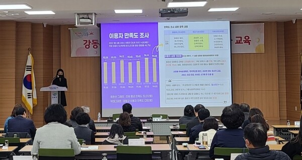 이번 교육은 돌봄SOS서비스 제공기관 센터장, 서비스 제공인력 등을 포함해 돌봄SOS센터 사업에 관심 있는 관련 종사자 총 40여명을 대상으로 ‘돌봄SOS센터 사업 추진 배경과 사업 이해하기’ 주제로 강의가 진행됐다.