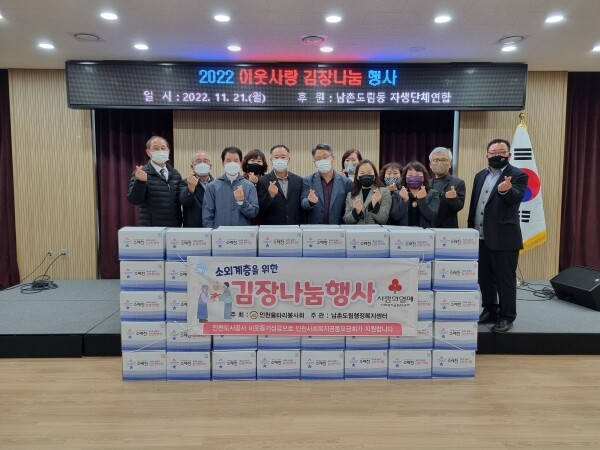 남촌도림동 주민자치회, 방위협의회, 통장협의회 등 자생 단체 연합회 회원들은 후원금 315만원을 모아 소래찬 김치로 구매했다.
