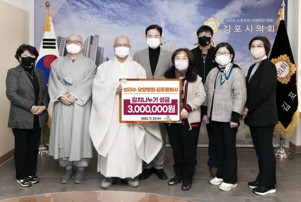 김포시새마을회 김미경 회장은 “보리수요양병원에서 2020년부터 매년 성금을 기탁해줘서 어려운 이웃들에게 맛있는 김장과 김치를 전해줄 수 있어 행복하다”며 “이번에는 새봄에 열무김치를 만들어 더 많은 이웃들에게 전달할 계획으로 성금을 기탁해 준 보리수요양병원과 용화사에 감사하다”는 마음을 전했다.