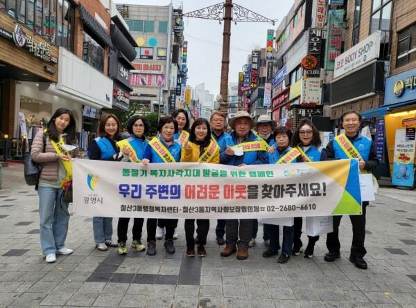 한편 철산3동 지역사회보장협의체는 아파트 마을공동체 활성화를 위한 업무협약, 이웃 온정 캠페인, 여름극복·일상회복·복쓰리 나눔캠페인, 특성화 사업 ‘따뜻한 손길, 따뜻한 한끼’, ‘이웃돕기 사랑의 바자회’ 등 관내 취약계층을 위한 돌봄과 복지사각지대 발굴 활동을 꾸준히 실천해오고 있다.