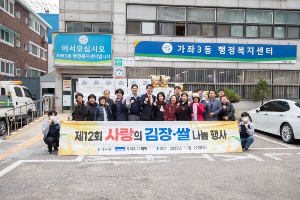 ㈜리팩, 가좌3·4동 이웃위한 김장김치·양곡 전달