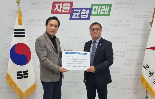 이에 이 의원은 임태희 교육감에게 인구규모에 맞는 초등학교와 고등학교 신설 교육여건 개선으로 공부에 전념할 수 있도록 학습권 보장 상존하는 통학 사고위험으로부터 보호대책 마련 지역 내 상위학교 진학 기회 마련 및 학부모간 불화 해소 등을 건의했다.