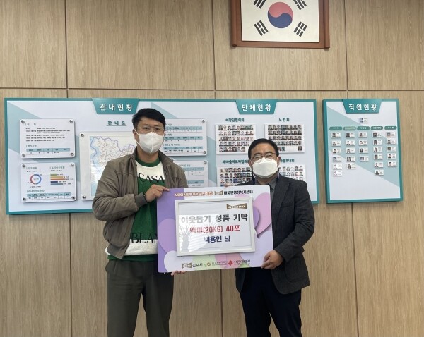 지난 15일 ㈜다원D&C는 대곶면행정복지센터를 찾아 쌀 20KG 40포를 기탁했으며 대곶면이장단협의회는 불우이웃 돕기 성금으로 200만원을 기탁했다.