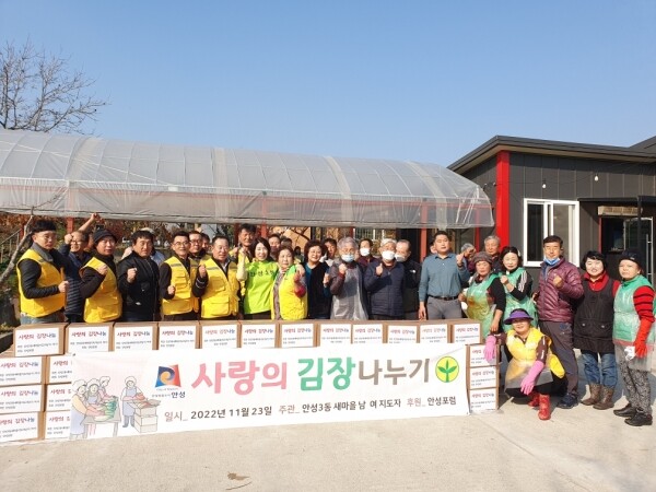 이번 행사에서는 안성3동 새마을지도자회 회원을 비롯한 주민센터 직원, 통장단협의회 등 60여명이 참여해 따뜻한 온기를 나누며 정성껏 김장김치를 만들었다.