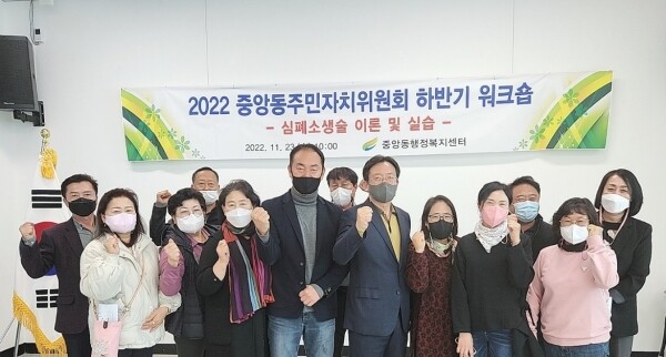 정이화 중앙동장은 “항상 중앙동을 위해 힘써주신 위원님들의 열정에 감사드리고 오늘 워크숍에 참석하신 분들이 심폐소생술 교육을 듣고 많은 배움을 통해 중앙동주민자치위원회가 한층 더 나아가기 위한 시간이자 기회가 되길 바란다”고 밝혔다.