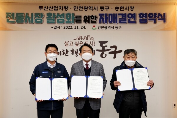 동구는 24일 전통시장 활성화를 위해 관내 대기업인 두산산업차량과 송현시장 간 자매결연 체결을 추진했다.