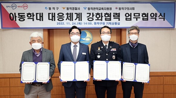 박일하 동작구청장은 “이번 협약을 통해 관계기관이 선제적으로 공동 대응함으로써, 아동학대 사건의 사각지대를 없애는 데 최선을 다하겠다”고 말했다.