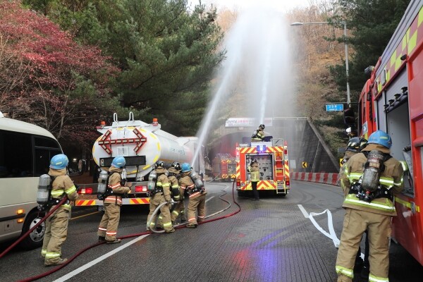 훈련은 터널 진입 부근 차량 10중 연쇄 추돌사고와 산불화재 발생 상황을 가상해 초동대처, 인명구조, 현장대응 및 복구수습 활동까지 신속한 위기대응 능력을 점검하고 안전의식을 높이는 데 중점을 두고 진행됐다.