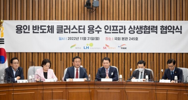 이날 협약서에는 이충우 여주시장을 비롯해 곽노정 SK하이닉스 대표이사, 이한준 LH 사장, 김성구 용인일반산업단지 대표가 서명했고 협약식에는 이창양 산업부 장관, 방문규 국무조정실장, 정진석 국민의힘 비상대책위원장, 성일종 국민의힘 정책위의장, 김선교 국회의원, 양향자 국회의원 등이 참석했다.