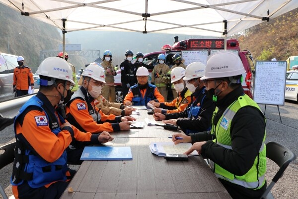 이번 훈련은 터널 내 다수사상자 인명구조 및 화재진압, 유해화학물질 누출 시 긴급대응을 가정해 진행됐다.