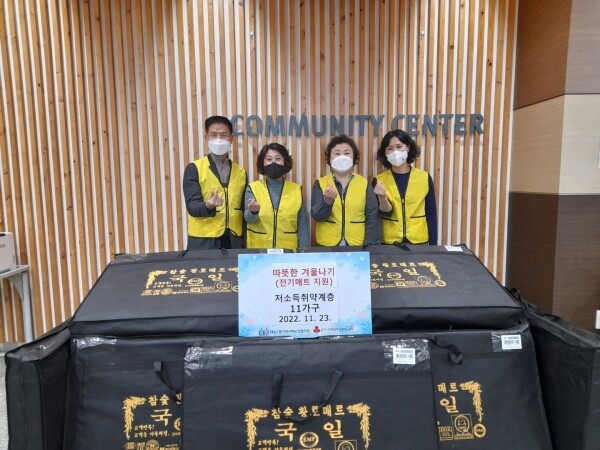 올해 세 번째로 실시한 겨울용품 지원 사업은 관내 저소득층 11가구의 따뜻한 겨울나기를 위해 온열매트를 전달하고 안부를 살폈다.