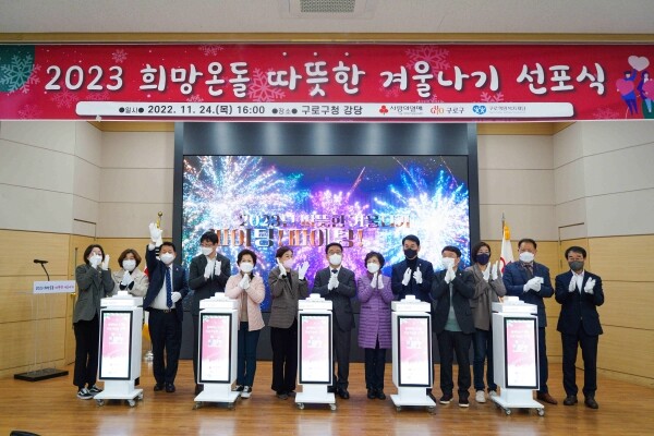 구로구는 주민들의 참여를 독려하고 사업을 홍보하기 위해 24일 구청 강당에서 ‘2023 따뜻한 겨울나기 사업’ 선포식을 개최했다.